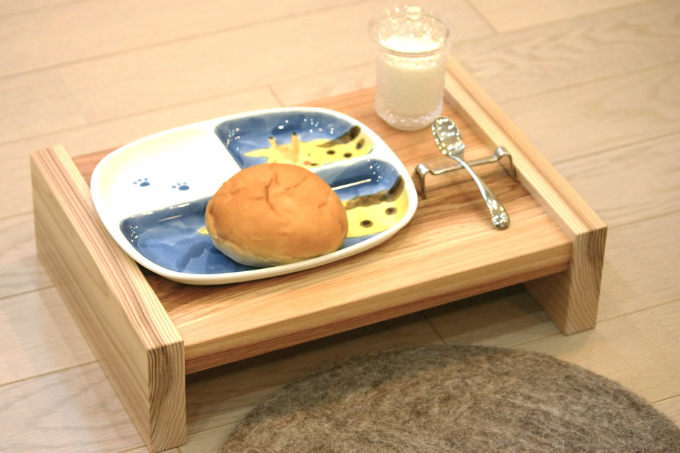 平安時代から昭和の始めまで使われていた「銘々膳」を食品衛生に配慮して復元した一人用の食卓です。